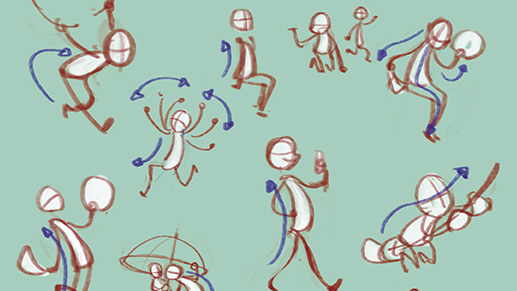 Focusing on gesture alone with stickfigures and fluid poses by finding alignments within the figures.